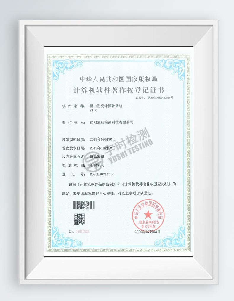 黑白密度計操作系統(tǒng)著作權(quán)證書