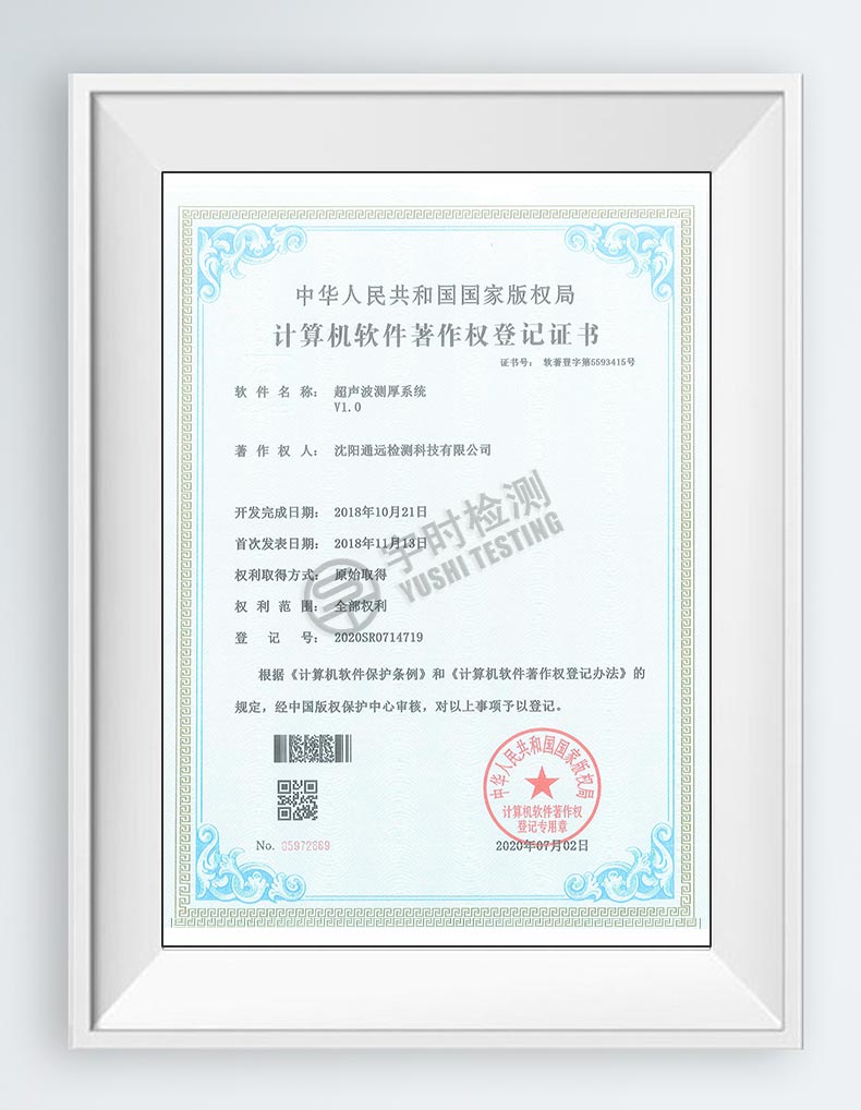 超聲波測厚儀系統(tǒng)軟件著作權(quán)證書